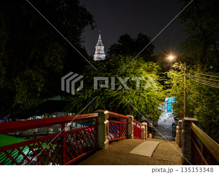 夜の町中から見るワット・パークナム・パーシーチャルーン タイのバンコク