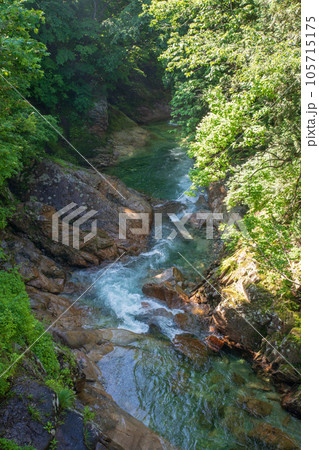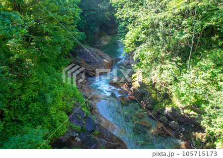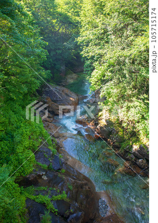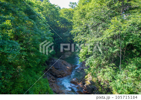 湯吹きの滝下流 湯檜曽川 真夏の風景 みなかみ町
