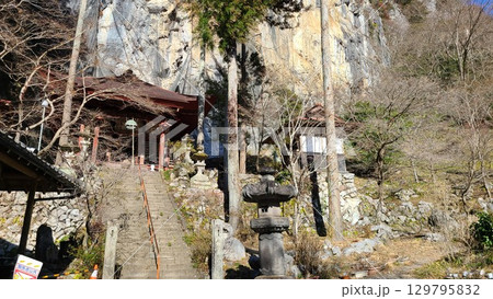 切り立つ岩山の前に石龍山橋立堂/埼玉県秩父市【ジオパーク秩父】