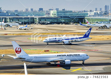 羽田空港の風景 タキシング中の飛行機 東京都大田区