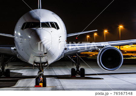 夜の羽田空港 タキシング中の飛行機 東京都大田区