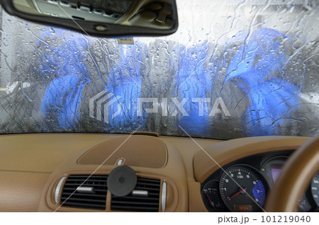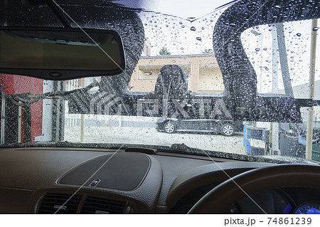 洗車機で車を洗う様子(車内から撮影)