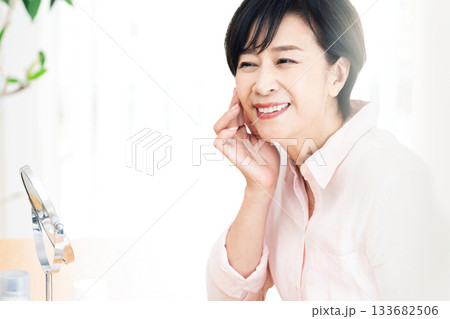 スキンケアをする中高年女性