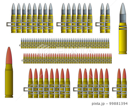機関銃の弾と連装した弾帯のイラスト(弾頭形状の異なる2種類セット)