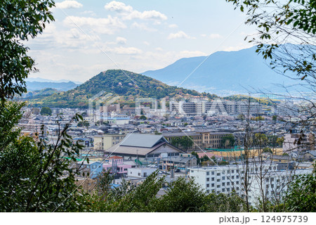 大和三山耳成山から桜咲く大和三山畝傍山と瓦屋根の畝傍高等学校 2025年4月4日