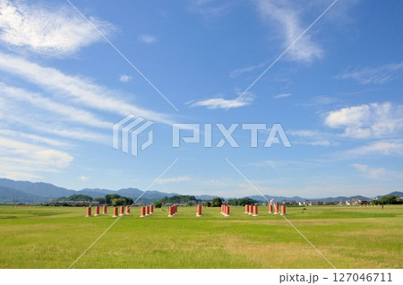 奈良県橿原市 盛夏の藤原宮跡と畝傍山