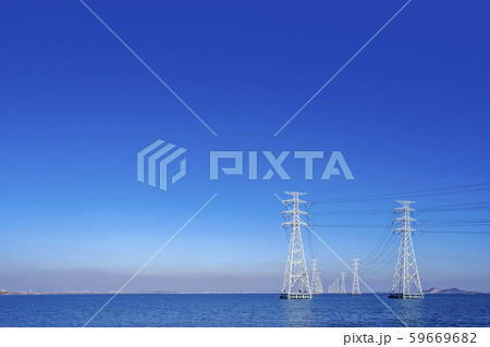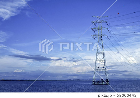 風景 日の出 送電塔