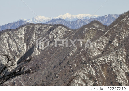 冬の丹沢稜線から見る檜洞丸と赤石岳・聖岳