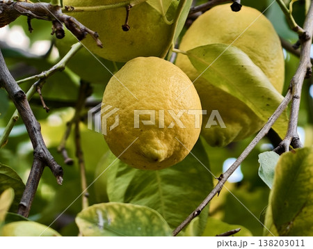 【日差しをたっぷり浴びた住宅庭先のレモン】
