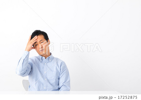 男性 頭痛 憂鬱 鬱 男性 ミドル世代 中高年 短髪の男性 借金 普段着 男の人 体調不良