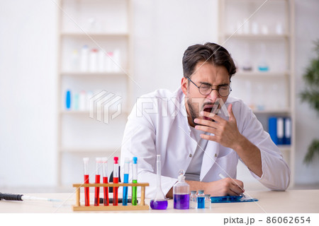 Young male chemist in drugs synthesis concept