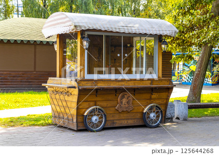Cute wooden craft fish decor inside modern cafe and restaurant