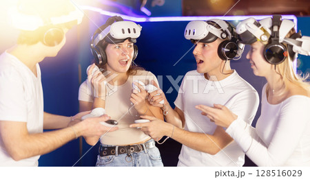 People gathered near the Christmas tree decorated with garlands and toys in the main city square. Festive winter holidays. New Year celebration. This is AI-generated item