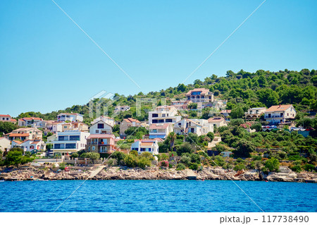 Seaside Town with Colorful Houses and Boats. Cityscape of Rogoznica, Croatia