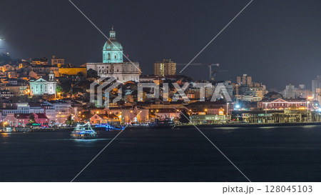 Aerial night timelapse of Lisbon's historic center with the illuminated National Pantheon