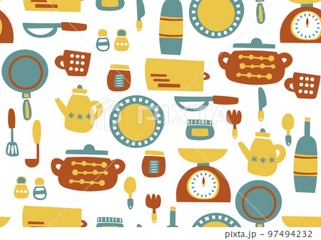 北欧風 かわいいキッチングッズの背景素材 シームレスパターン