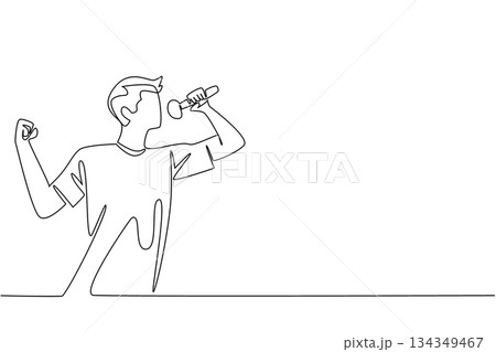 Single continuous line drawing a young man in casual clothes is singing. Practice seriously to join the talent search event. Hobby singing. National Sing Out Day. One line design vector illustration