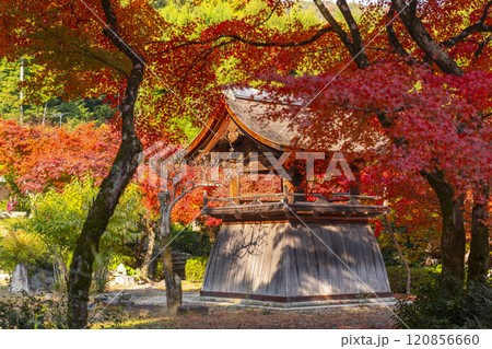 秋の京都 正伝寺 紅葉に包まれた鐘楼