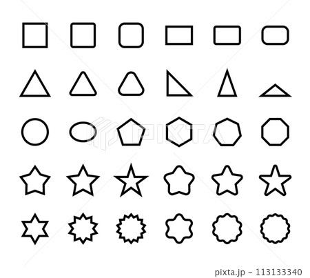いろいろな形の図形のアウトラインベクターアイコンセット