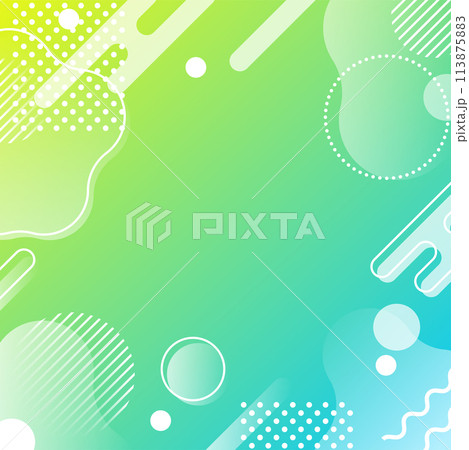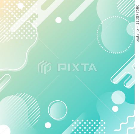 抽象的 幾何学 フレーム 水玉とウェーブ 青と黄緑