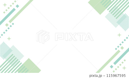 幾何学 フレーム 緑 シンプル 四角 メンフィス キラキラ