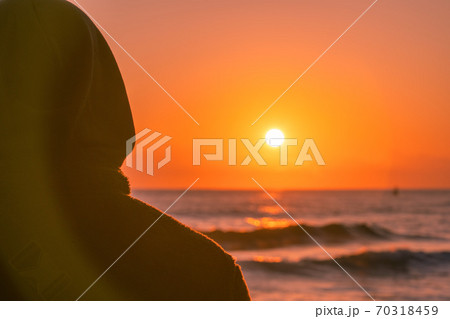 夕焼け 海 シルエット