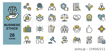 企業倫理に関するアイコンセット カラー