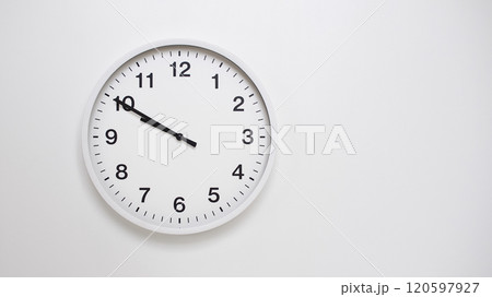 Classic Black-Edged Clock on White Background at 10.25/22.25 - Perfect for Time Management and Text Space