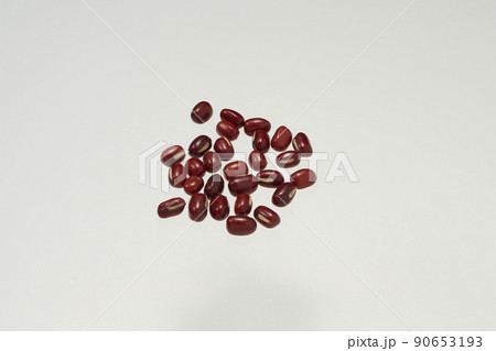 素材としての使用をはじめとした様々に活用できる、北海道産「小豆」という豆の数粒俯瞰撮影