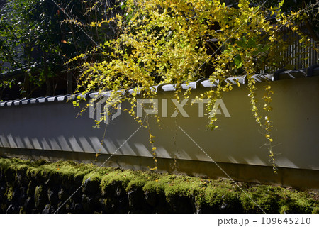 秋の東福寺 龍眠庵の土塀と紅葉 京都市東山区