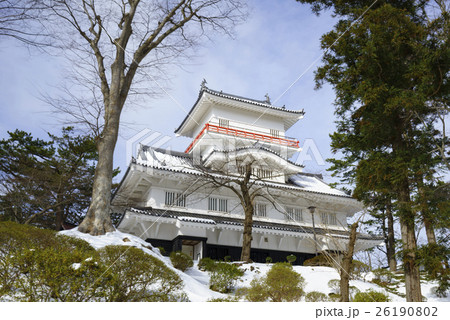 久保田城御隅櫓Tower of Former Kubota Castle貴重な冬の晴れ間青空と雪