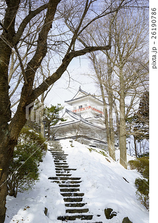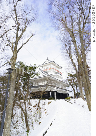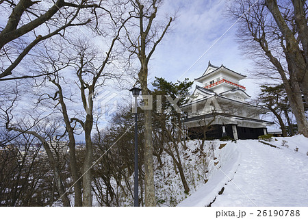 久保田城御隅櫓Tower of Former Kubota Castle貴重な冬の快晴の青空と雪