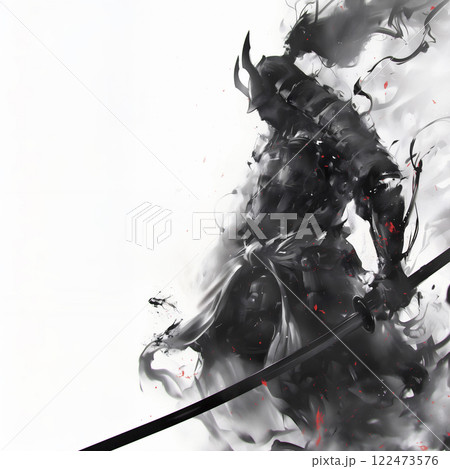 躍動感あふれる墨絵のサムライ(AI生成画像)