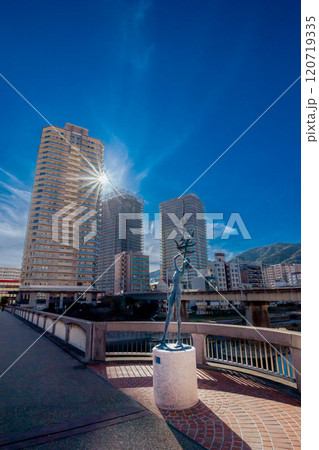 宝塚大橋からの洛陽風景、太陽、光、11月8日、日本