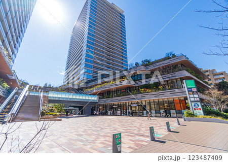 JR武蔵小金井駅の南口から駅方向の高層ビルを見上げる 東京都小金井市本町