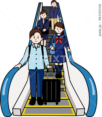 マスクをしてエスカレーターに立ち止まって乗る人達