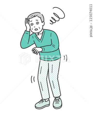 めまいを起こしふらつく高齢男性のイラスト