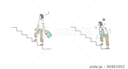 階段と買い物の中年から年配の女性のセット