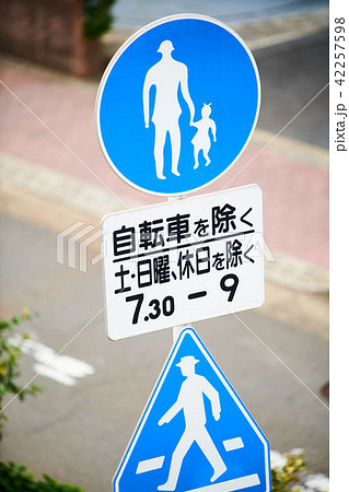 歩道に設置された規制標識 325-3「普通自転車等及び歩行者等専用」と補助標識