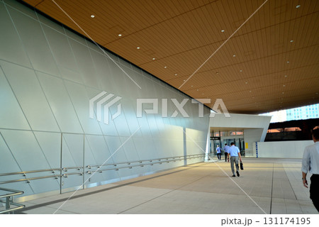 埼玉県川口市の川口駅西口のペデストリアンデッキと川口総合文化センターリリアの風景