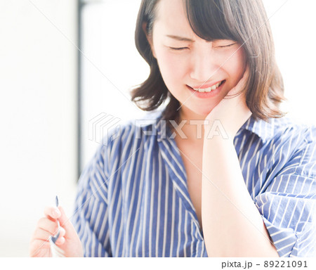 頬を抑える妊婦 虫歯など コピースペース 16:9