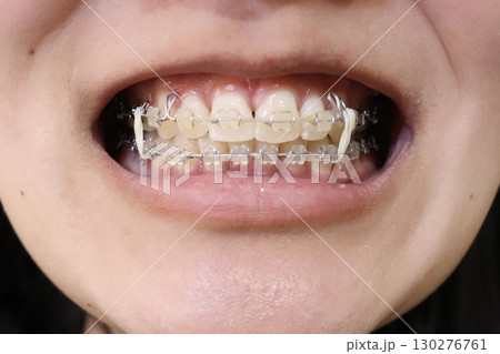 歯列矯正中の女性