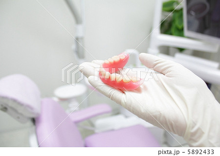 入れ歯を持つ歯科医(歯科助手、衛生士、技工士)