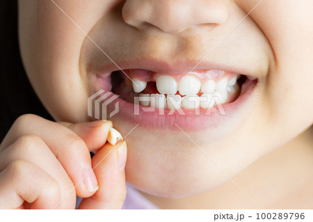 乳歯が抜けた8歳の女の子の口元