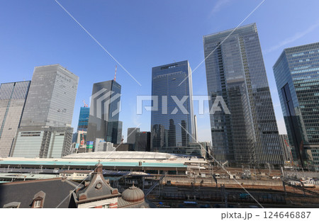 キッテテラスから見る東京駅越しの八重洲のビル群
