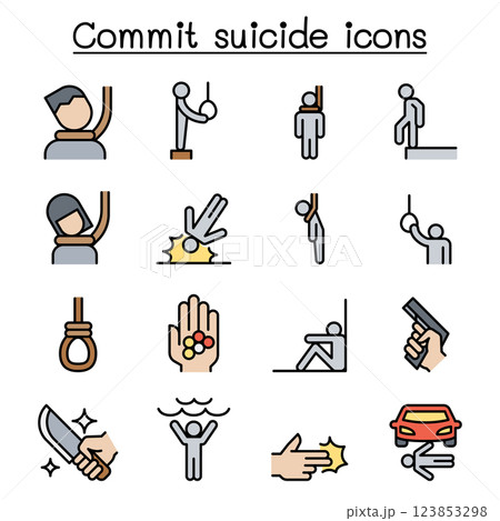 Commit suicide icon set in colorline style