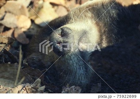アナグマ ぐっすり眠ったアナグマの鼻の穴のアップ。