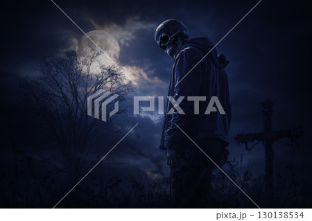 Ghostly Figures Drifting Through Moonlit Cemetery