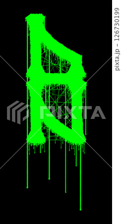 Death-metal font. Acid green letter on black background. Custom lettering.