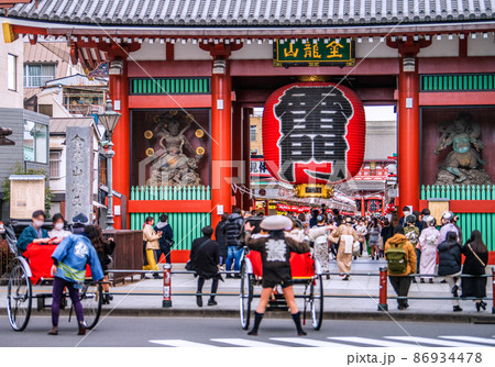 日本の東京都市景観 驚愕の人出…コロナ禍前をこえる外国人観光客で賑わう浅草寺…新時代へ=2月18日